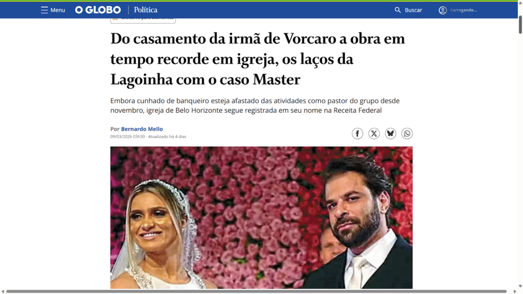 Diante desse conjunto de informações, é possível afirmar que há uma rede de relações pessoais, familiares e financeiras que conecta investigados a pessoas ligadas à Igreja Batista da Lagoinha, sem que isso configure, até o momento, evidência de envolvimento institucional da igreja.