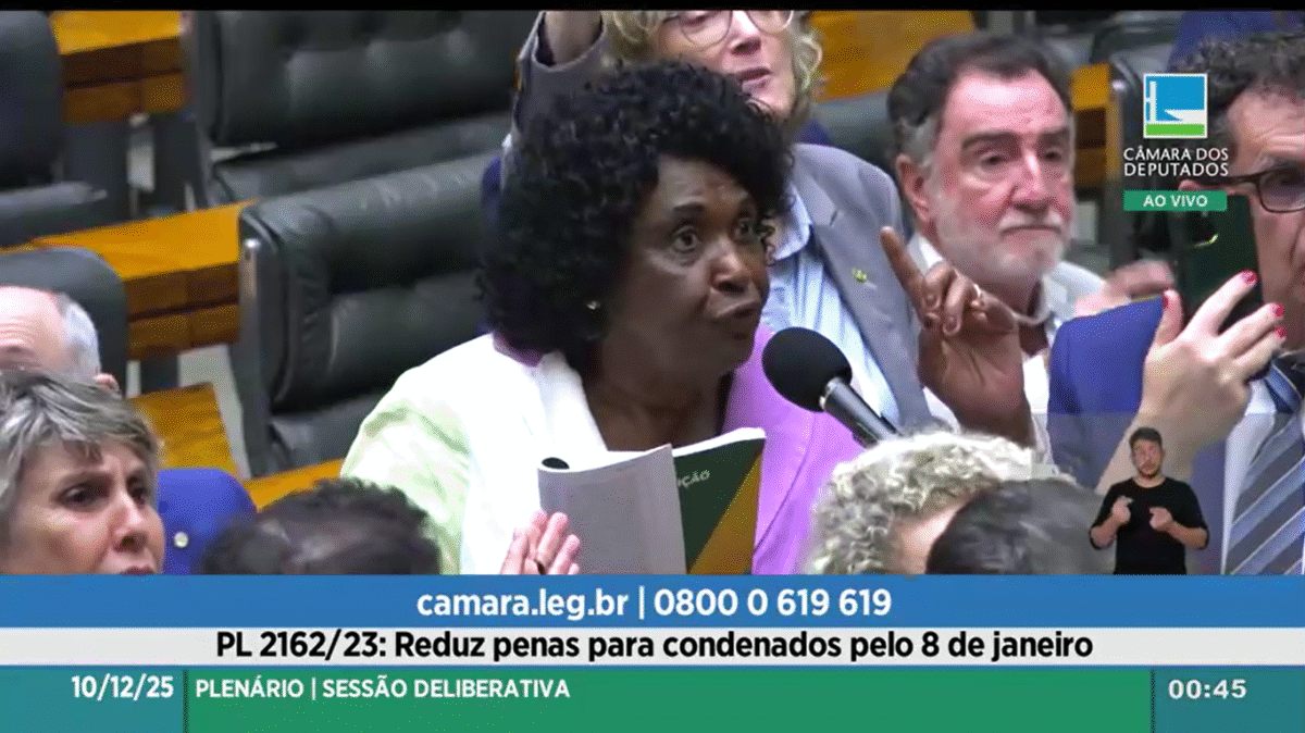 Motta insistiu, dizendo que o PT “votou contra”, mas Benedita sa Silva manteve a correção: o partido assinou a Carta Magna e participou de sua construção. A deputada também lembrou que, ao emitir opinião em meio à votação, o presidente da Câmara descumpriu o Regimento Interno que o obriga a transmitir a presidência a outro parlamentar quando deseja se manifestar politicamente. Ao contestar Motta em plenário, Benedita da Silva reafirmou a importância da verdade histórica para o debate democrático: