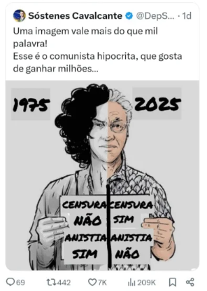 Imagem: Publicação do deputado Sóstenes Cavalcante no X, em 21 set 2025