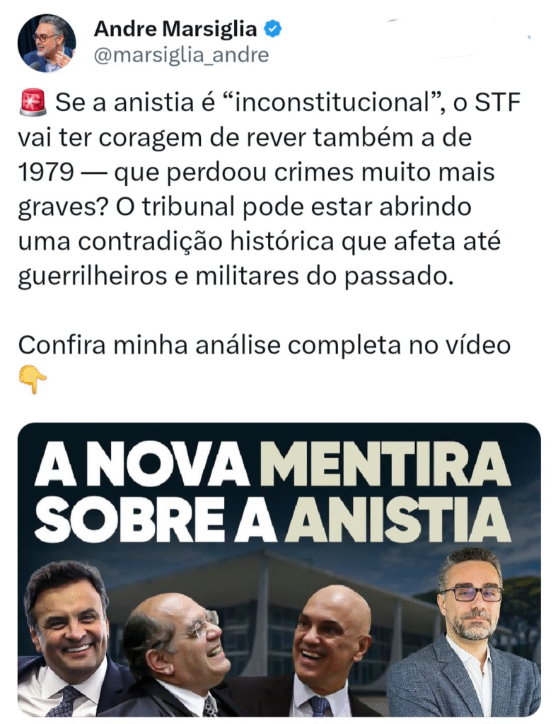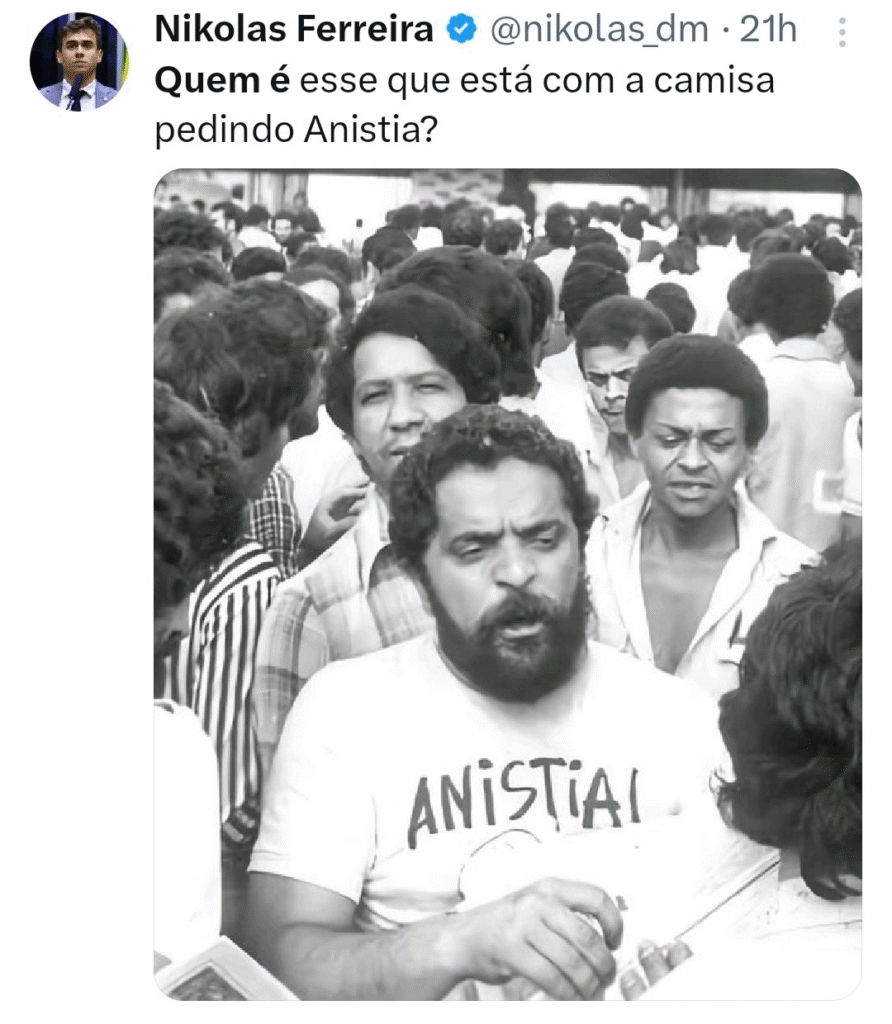 Com o acirramento, neste setembro de 2025, da campanha na Câmara dos Deputados pela anistia dos agentes do golpe de Estado contra o resultado das eleições de 2022, políticos religiosos têm feito circular em ambientes digitais conteúdo que, deliberadamente, distorce e confunde a Lei da Anistia aplicada nos anos finais da ditadura militar, em 1979.