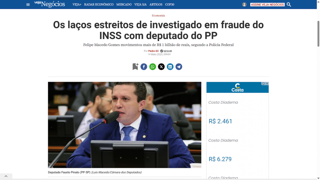 https://veja.abril.com.br/coluna/radar-economico/os-lacos-estreitos-de-investigado-em-fraude-do-inss-com-deputado-do-pp/ – Acesso em 14/10/25