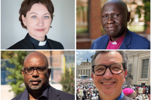 Imagem: Anglican Communion News Service. No alto à esq. Revda. Dra. Anne Burghardt e à dir. Revdo. Anthony Poggo; Embaixo à esq. Revdo. Vinod Peacock, à dir. Revdo. Dr. Reynaldo Ferreira Leão Neto.