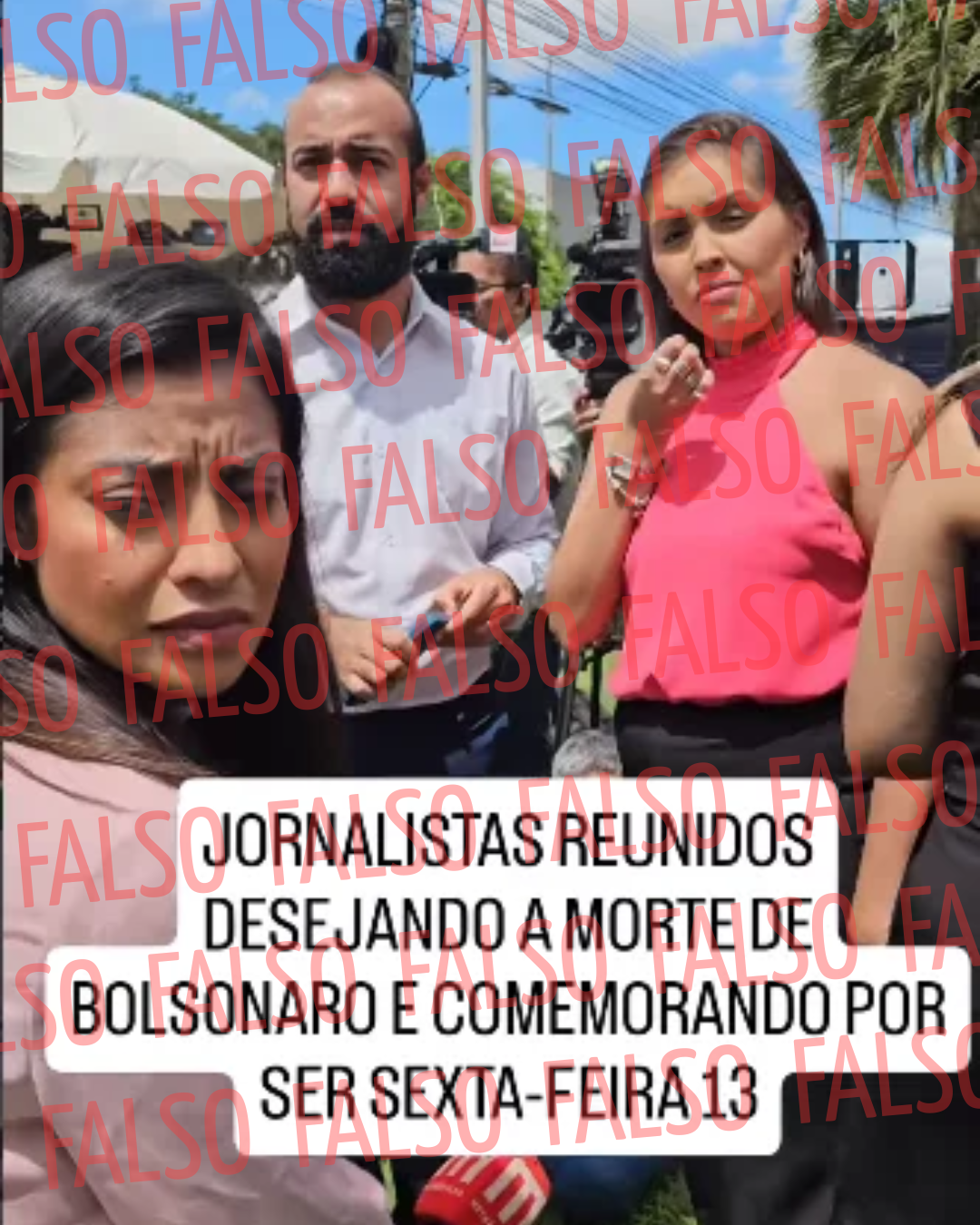 A gravação continha a legenda “Jornalistas reunidos desejando a morte de Bolsonaro e comemorando por ser sexta-feira 13”. A acusação foi deliberadamente proferida contra os profissionais que exerciam suas funções  sem apresentação de qualquer tipo de conteúdo que confirmasse a alegação.