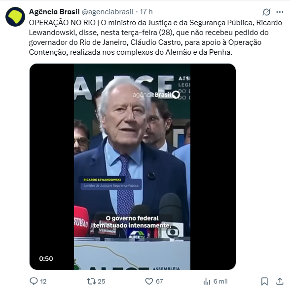 Logo depois que esse conteúdo circulou, já se verificava ser enganosa a afirmação do governador Claudio Castro. Após as declarações dele, o Ministério da Justiça e Segurança Pública (MJSP) divulgou nota em que afirma não ter recebido pedido de cooperação do governo do Rio. O órgão afirmou que “tem atendido, prontamente, a todos os pedidos do Governo do Estado do Rio de Janeiro para o emprego da Força Nacional de Segurança Pública no Estado, em apoio aos órgãos de segurança pública federal e estadual”. Na nota é afirmado que a Força Nacional foi mantida no Rio de Janeiro desde outubro de 2023, com atuação garantida até dezembro de 2025. Segundo o ministério, essa medida pode ser renovada.