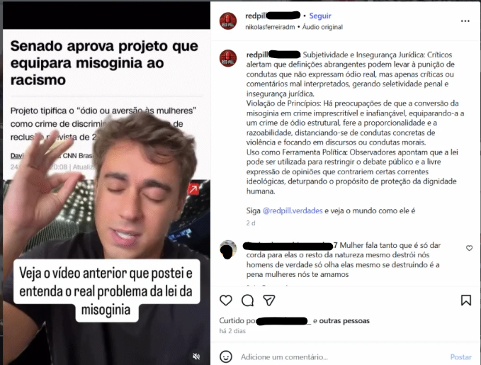 Imagem: Publicação de perfil autoidentificado como “redpill” no Instagram em 28 de março de 2026